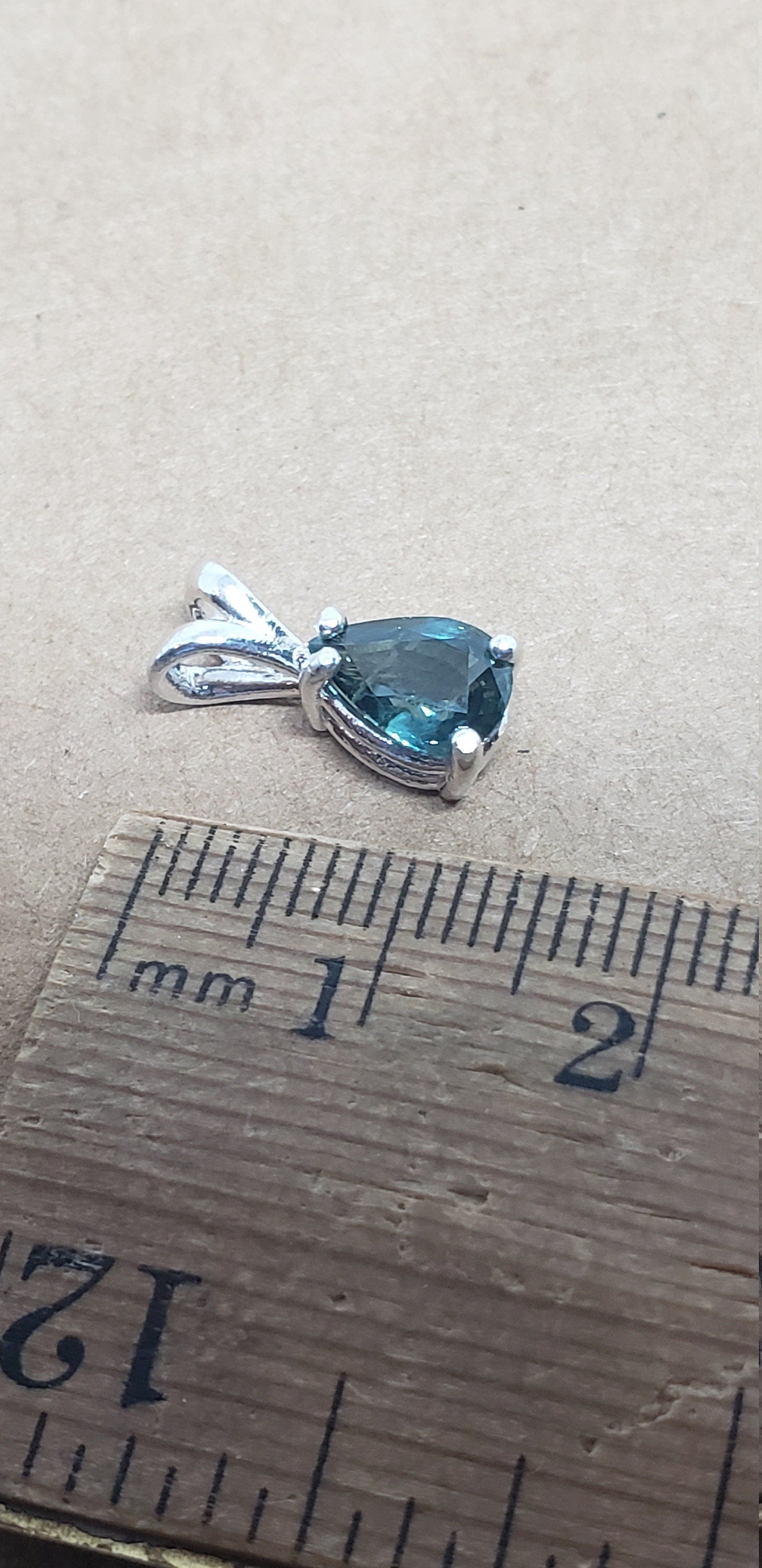 Beautiful 9x6 mm 1.25+ carat pear cut blue Australian sapphire pendant in sterling silver...case