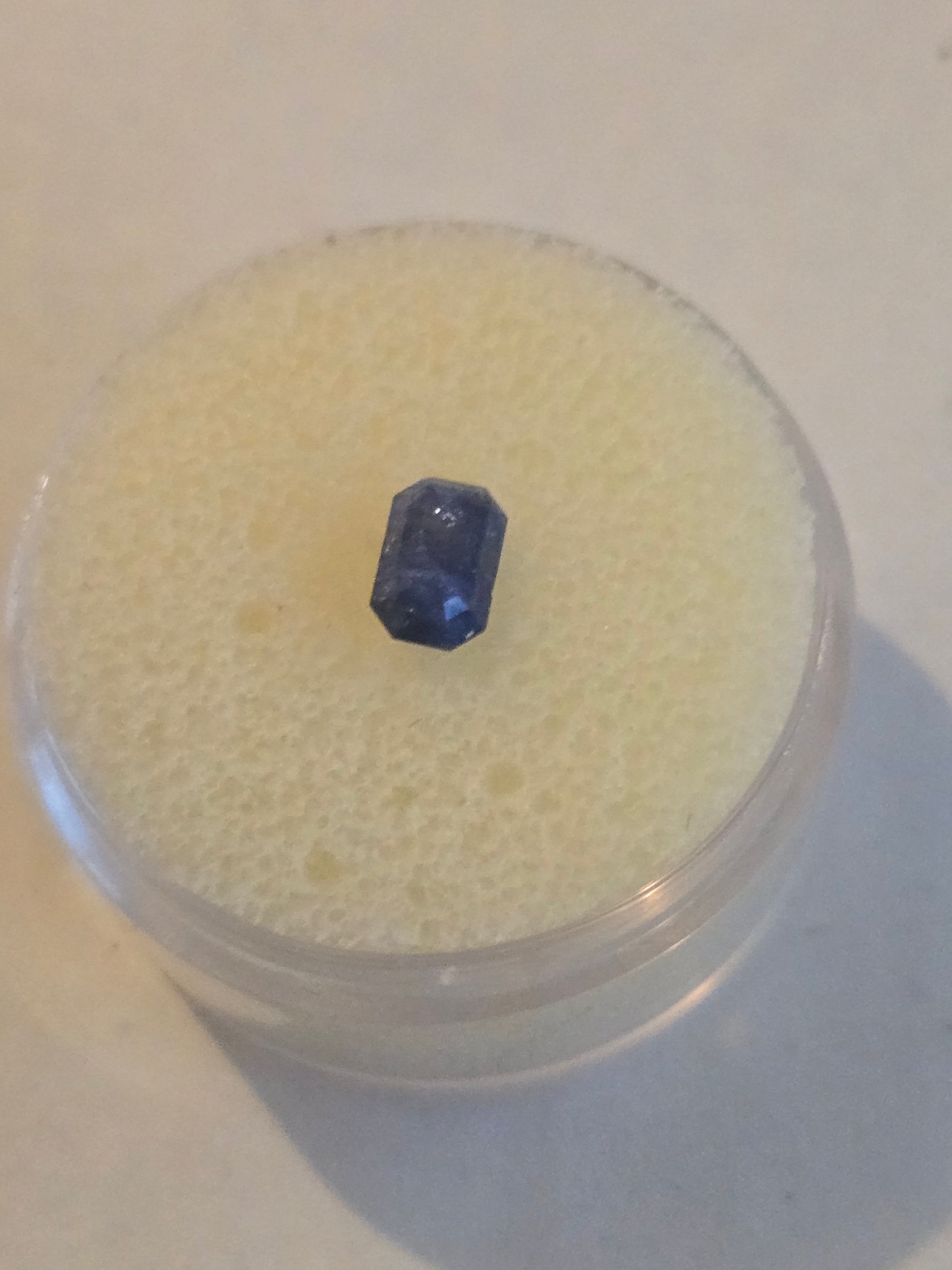 Neat 6x4+ mm 0.67+ carat octagonal cut benitoite gemstone..A2