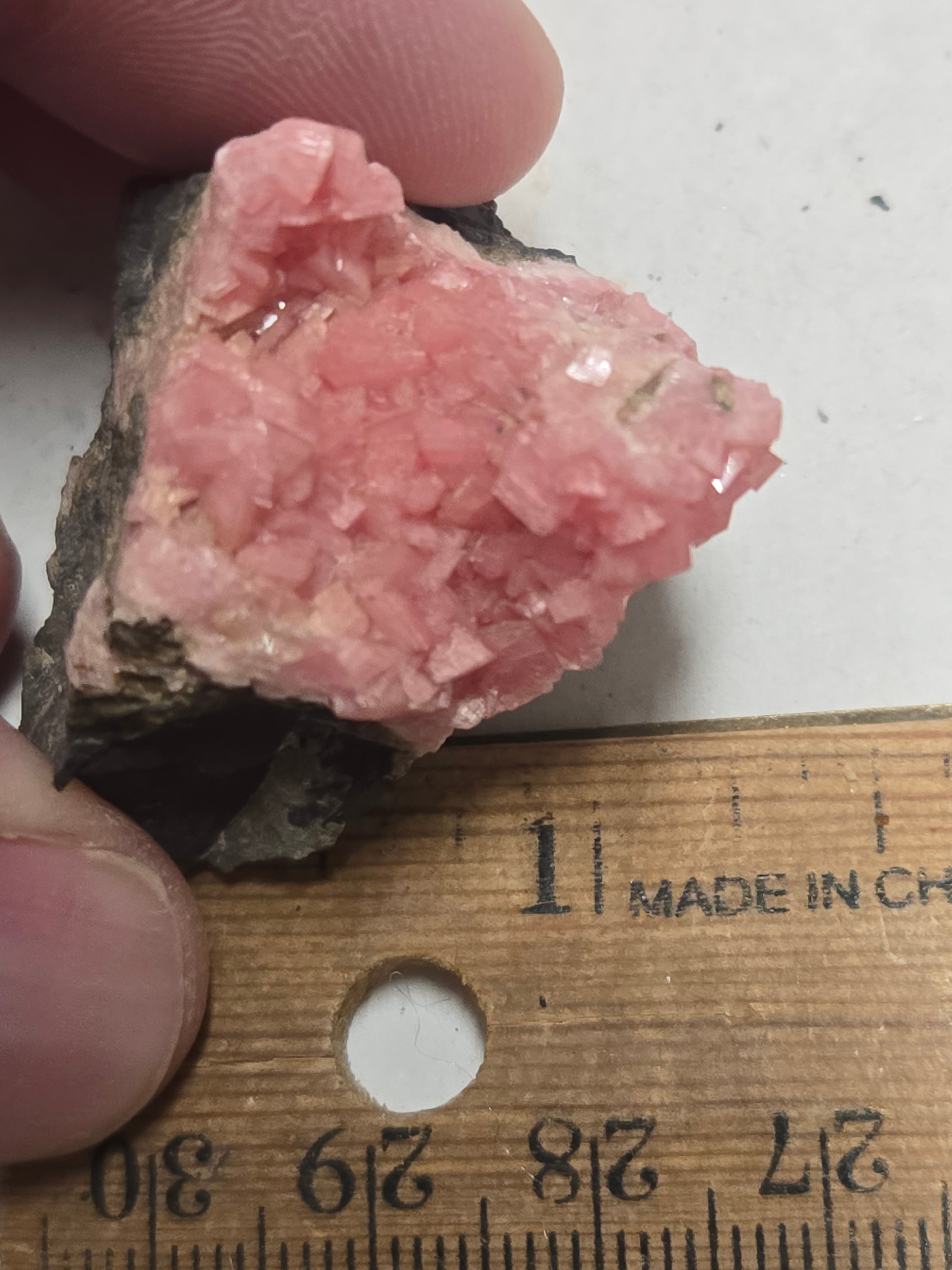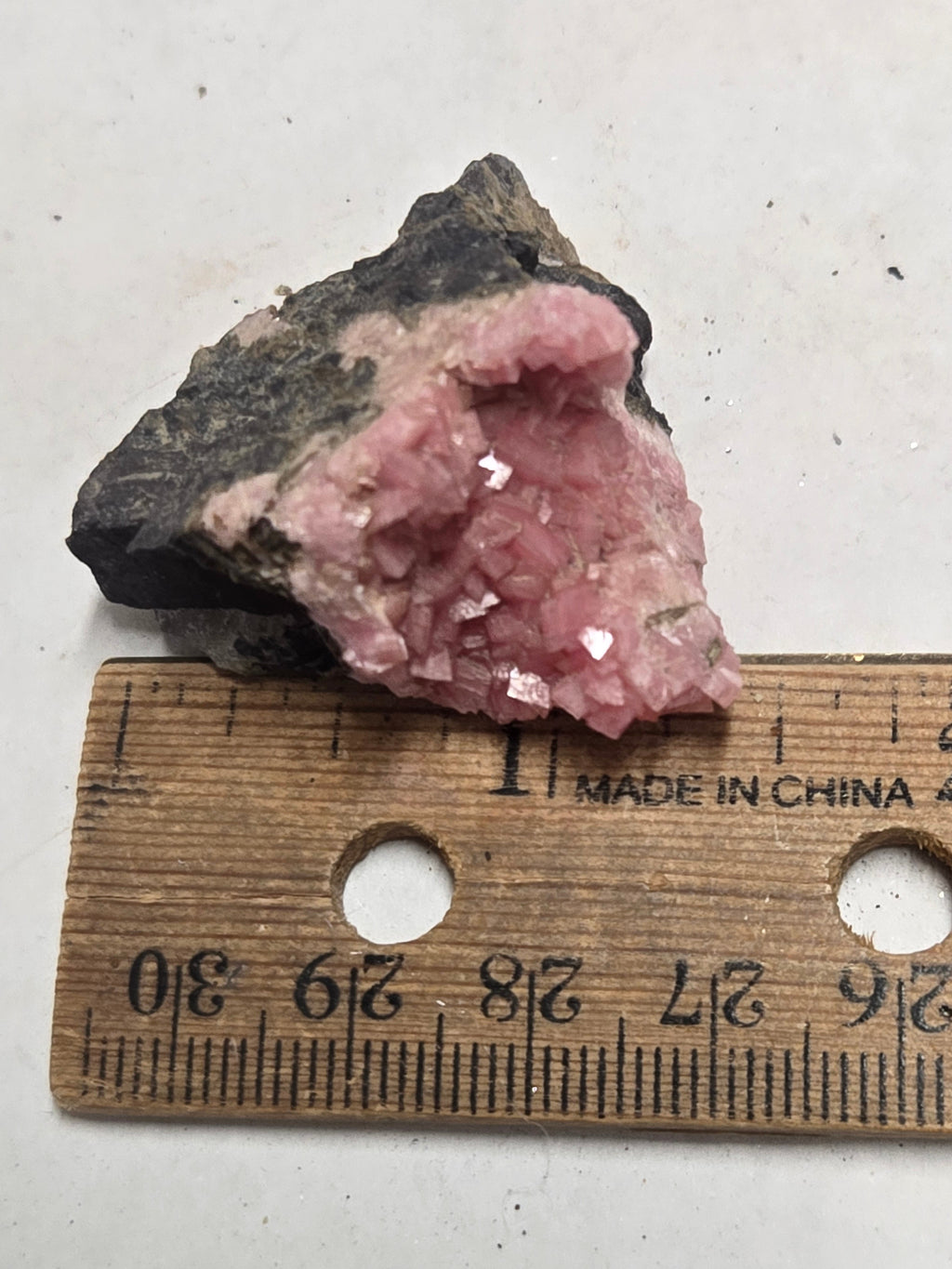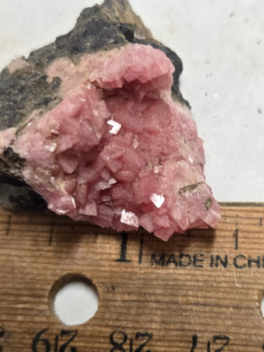 1 inch pink rhodochrosite from N Chwaning , South Africa