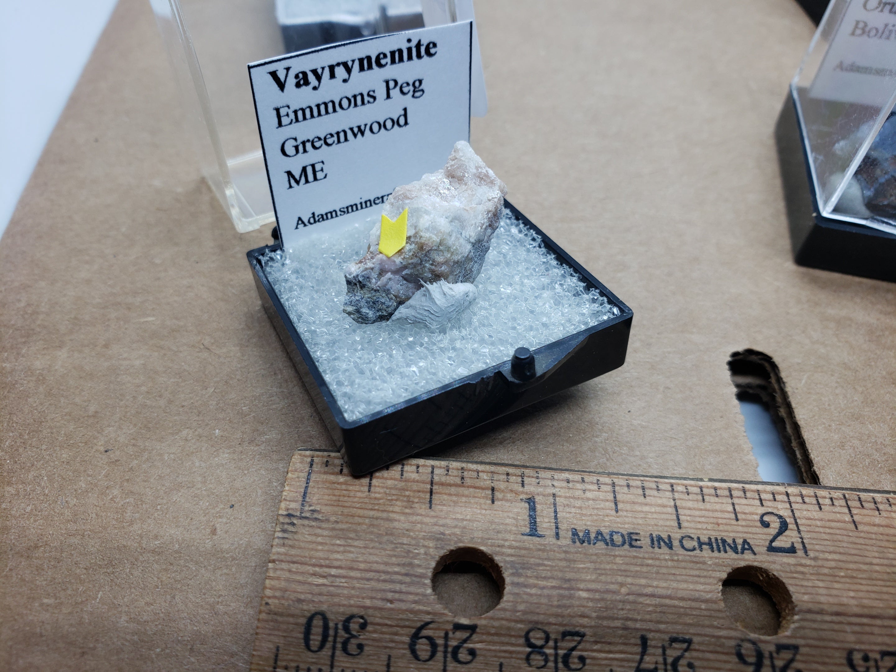 Rare 1.3cm pink vayrynenite from Greenwood Maine